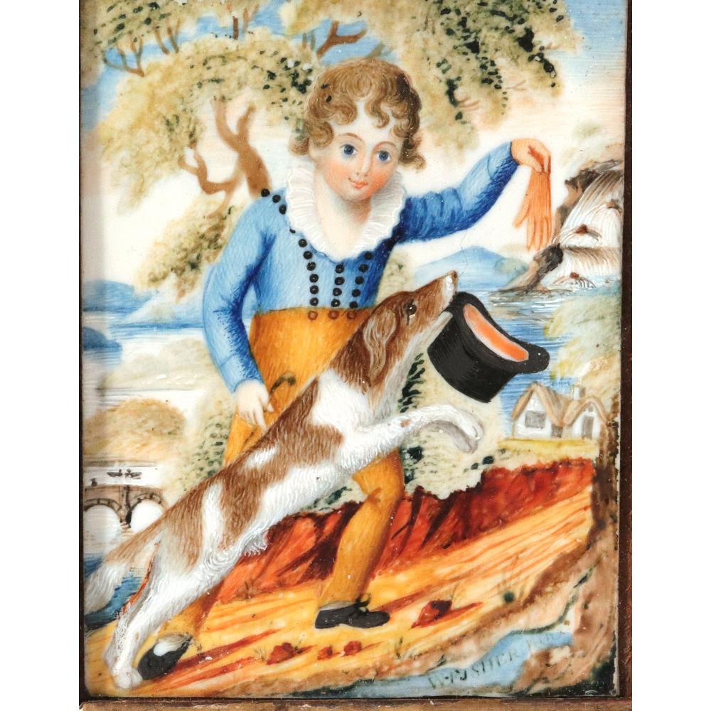 Playful Companions: Pair of Portrait Miniatures of Children by W. Fisher