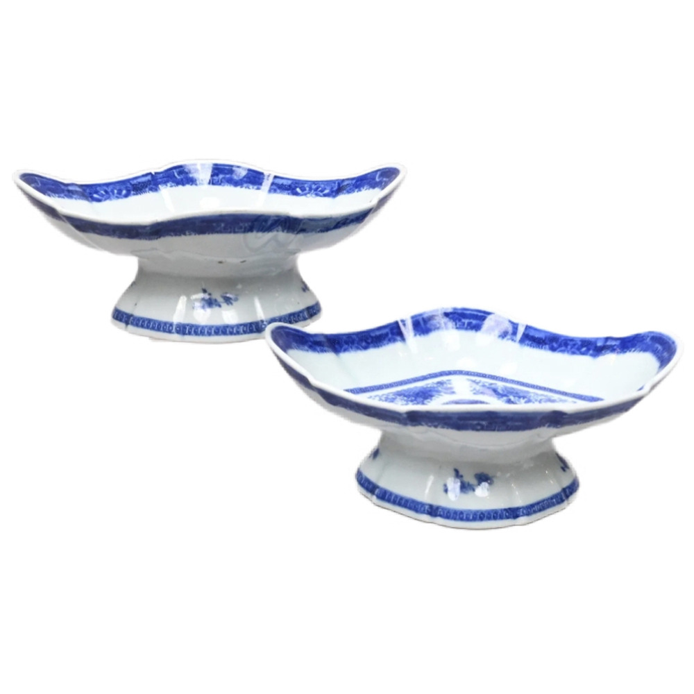 Armorial Elegance: Pair of Chinese Export Blue Fitzhugh Crested Compotes