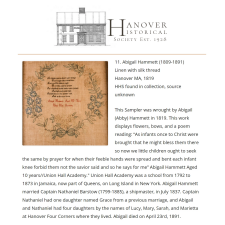 When the boys’ division was relocated in 1820 to a new building in Union Hall Street (so named for the presence of the school), the girls were transferred to the original 1792 building. A copy of this article accompanies the sampler.