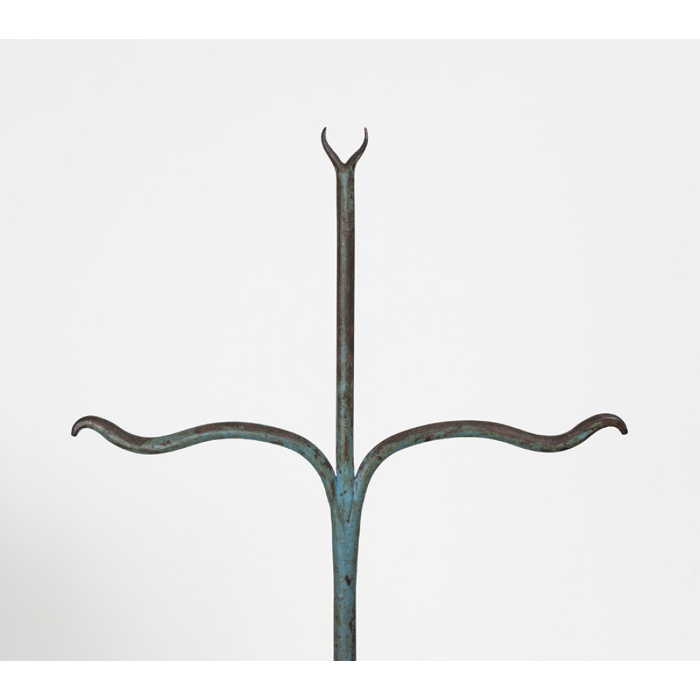 American, early 20th century unusual and very finely made wrought iron piece. Wonderful blue paint with expected wear.